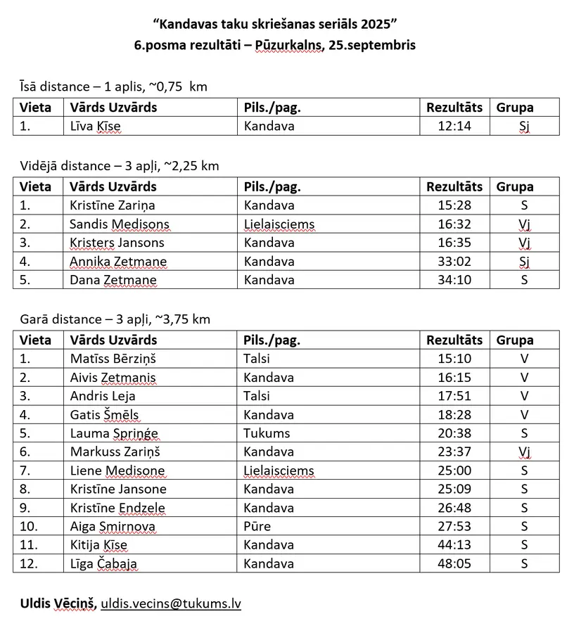 25.septembrī Pūzurkalnā noslēdzās "Kandavas taku skriešanas seriāla 2025" astotā sezona.
