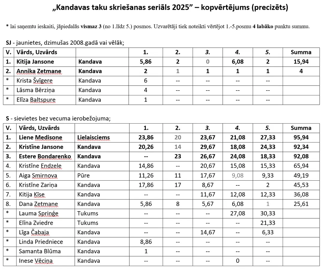 Bildes, posma rezultāti un precizētie kopvērtējuma rezultāti pielikumā!