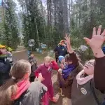 Pēc atklāšanas, klases sekoja līdzi savam pirmajam kontrollapas skaitlim un devās uz savu pirmo meža pieturu. Šajā pasākumā šādas pieturas bija 64. Obligāti bija jāapmeklē 5 norādītās pieturas. Mēs paspējām iziet 8 pieturas - Vai ir dzīve bez koksnes? (pēc neliela nozāģēta koka parauga bija jaatpazīst noteiktā koka suga un jāsaliek nozāģētas koka ripas puzzle), Jauna māja pūcei (kopīgi pagatavojām putnu būri strazdam, kuru pieliksim skolas parkā), Meža izsoles ( pēc norādītiem parametriem bija jānosola meža cirsma), Kur dzīvo ūdens? (bija jāatbild uz jautājumiem par ūdeni, jāizspēlē ūdensbumbu spēle), Skaties dabā! (ar spēļu palīdzību, pārbaudījām savu acu dominanti, ķērām ziepju burbuļus), Augu enerģija (trauciņi ar dažādiem augiem bija jāsaliek pie augu nosaukumiem, jāsadraudzējas ar pirtsslotiņām), Inspektors Caps (iepazinām malumedniecības sekas, nelikumīgās un likumīgās zvēru lamatas, izšautas dažāda veida čaulītes, dažādus aizsarglīdzekļus, izspēlējām atmiņu spēli un apskatījām mežā atrodamas detonētas kara trofejas) un Alnīša namiņš (izvēlējāmies katrs savu cepuri un pārtapām par meža tēliem).