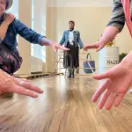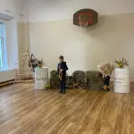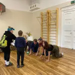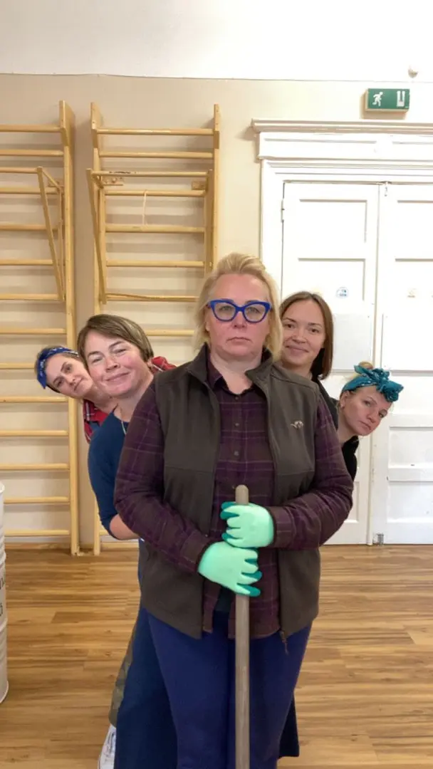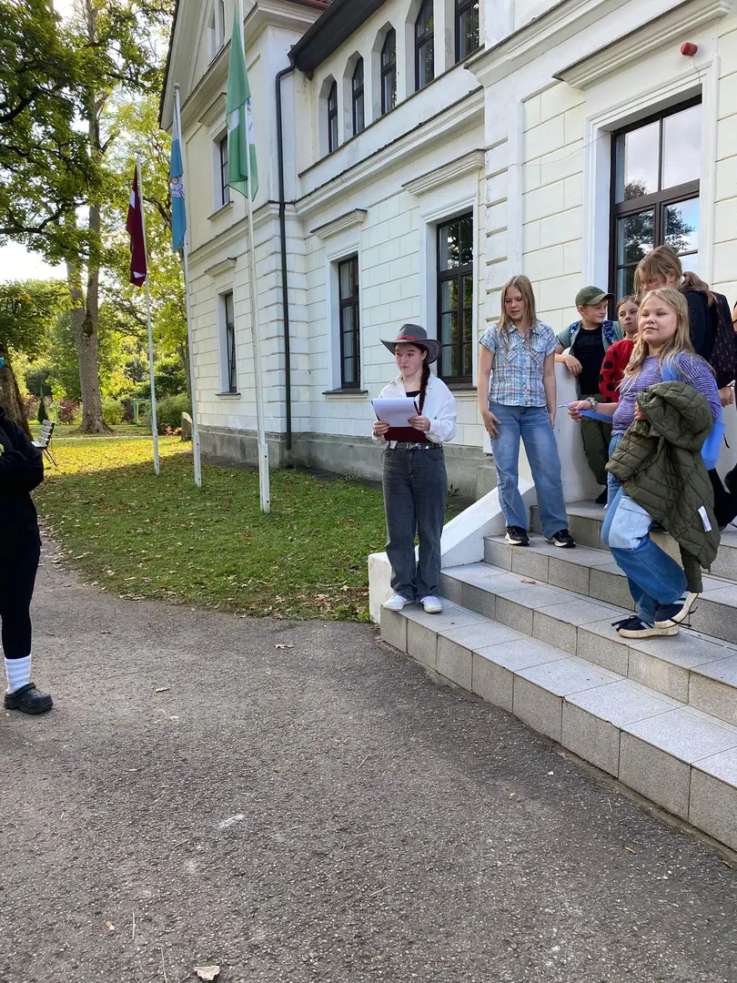 Pēcāk jau ierodoties skolā, 9. klases puiši skolotājas sagaidīja ar veselīgu sveicienu .