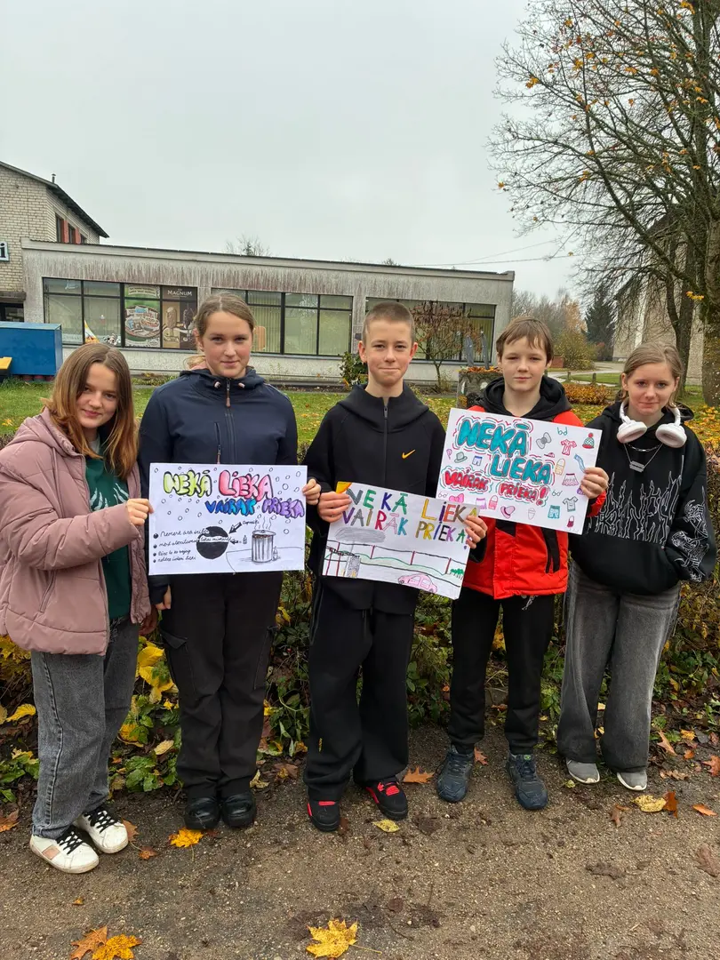 Skolēni jau iepriekš bija sagatavojuši plakātus, kurus izvietoja dažādās pagasta teritorijās; Pie veikala, kultūras nama, bibliotekas un baznīcas.