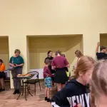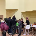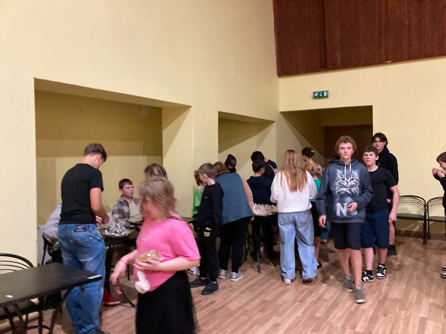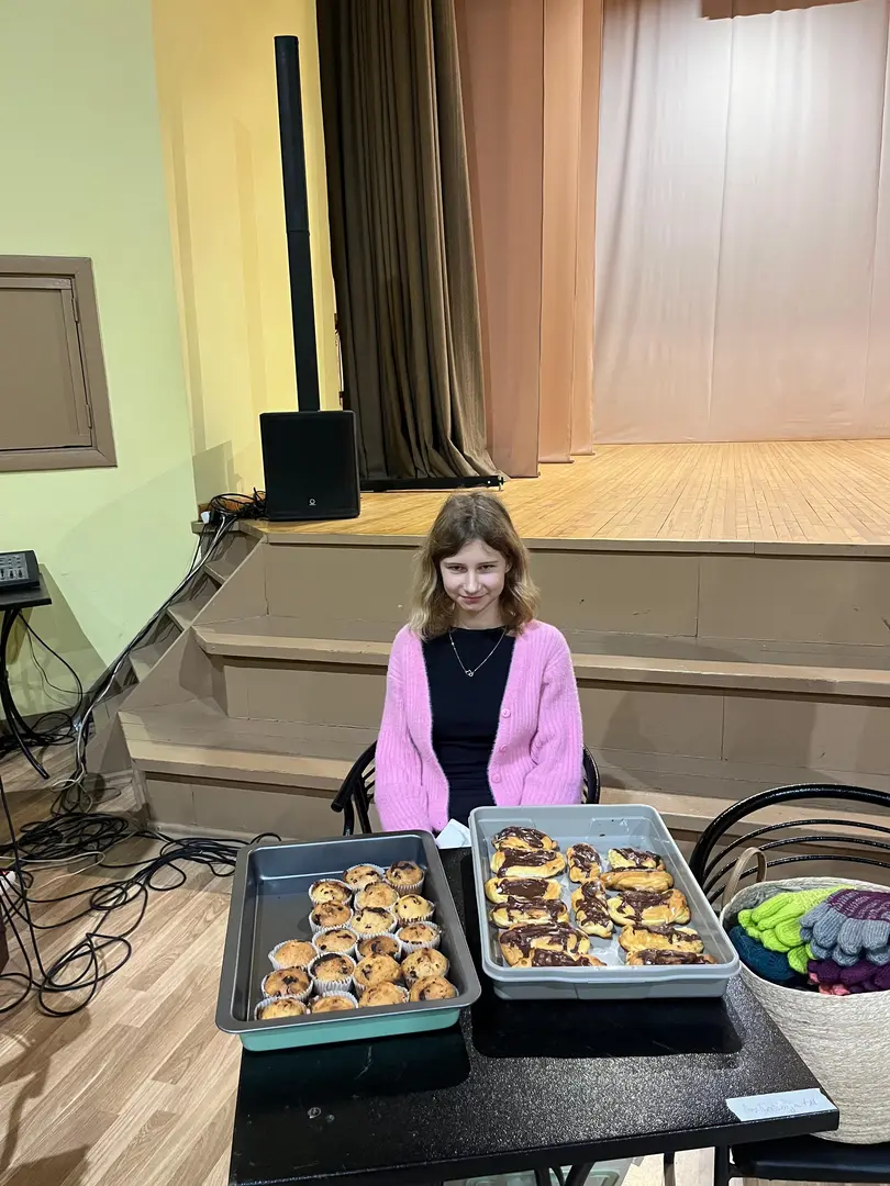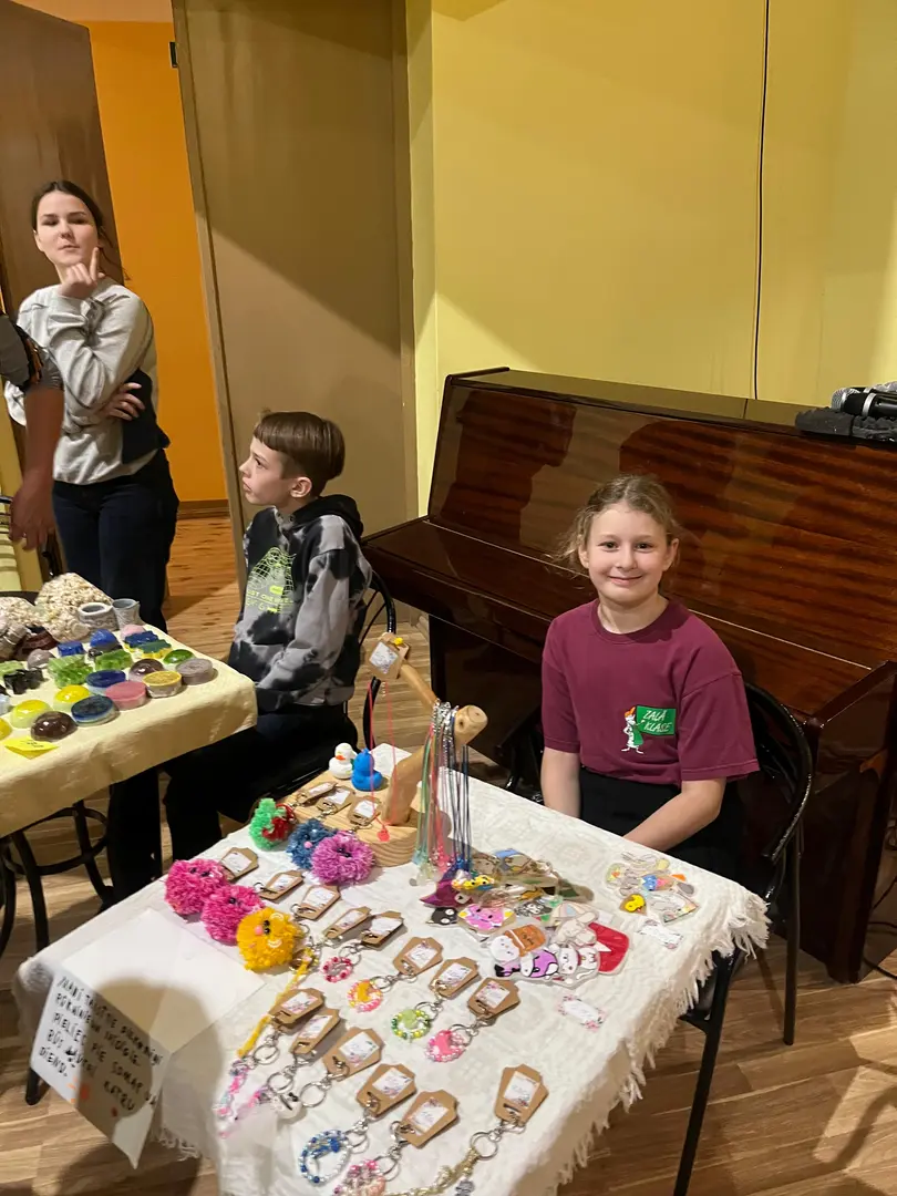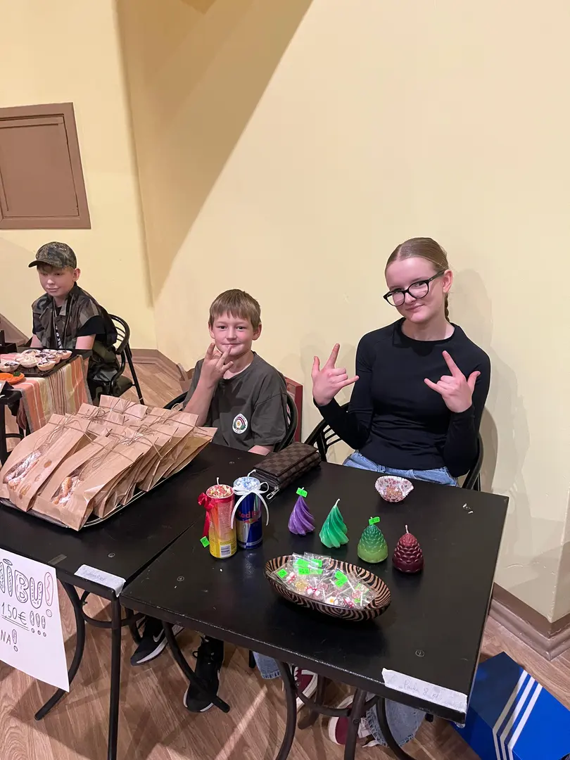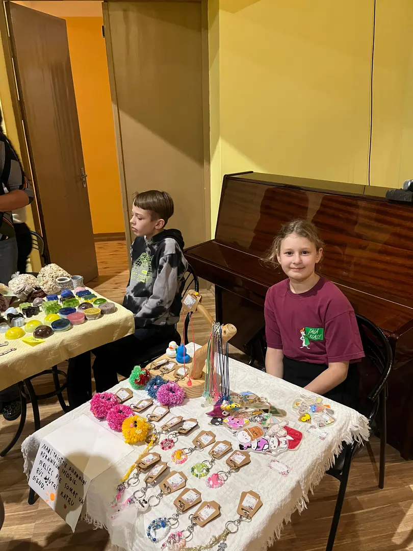 Tirdziņu svinīgi atklāja 6. un 7. klase, kas uzņemās šī gada rīkotāju un vadītāju godu kopā ar audzinātāju — skolotāju Elitu.