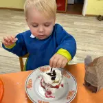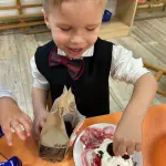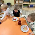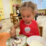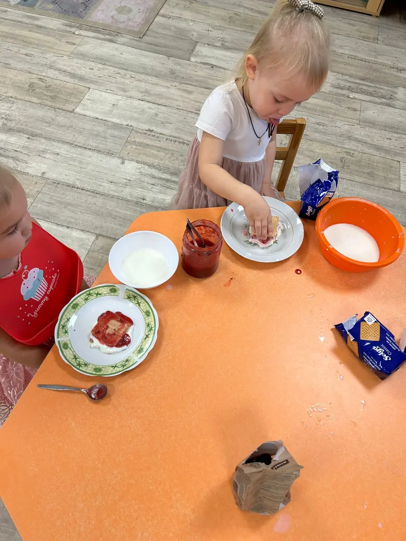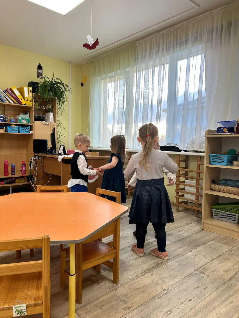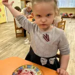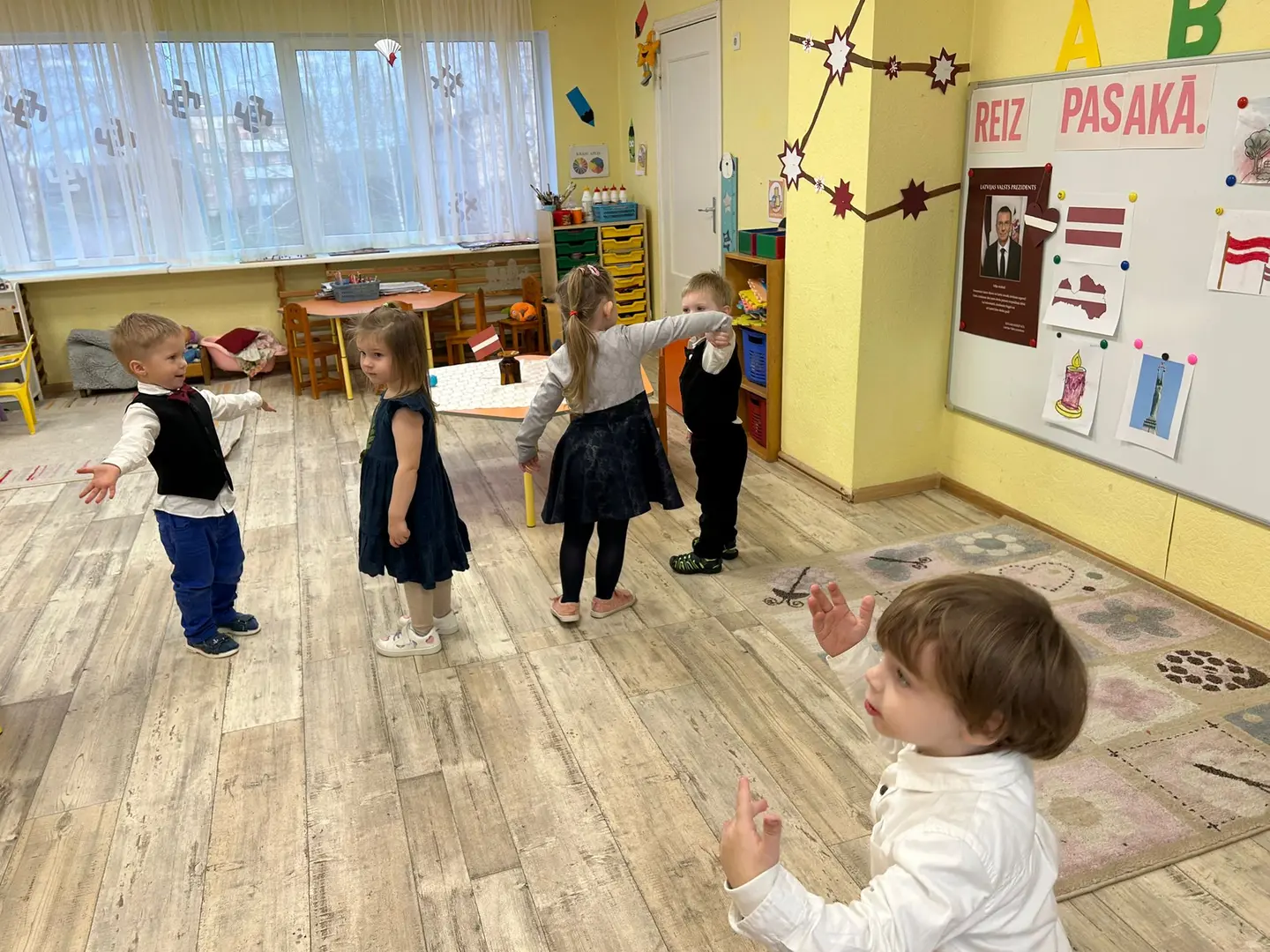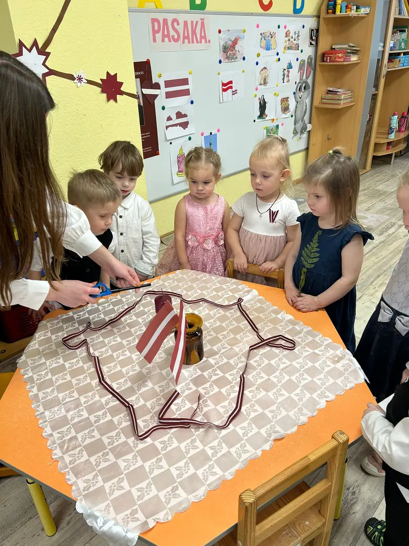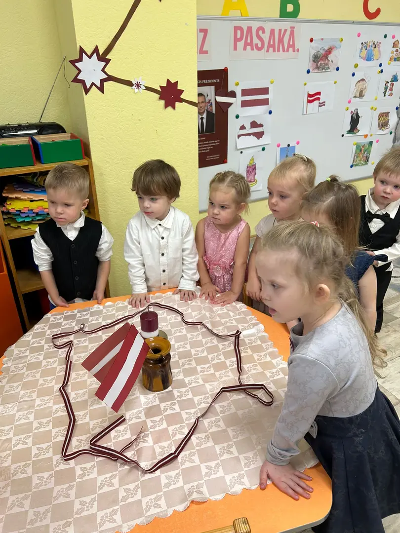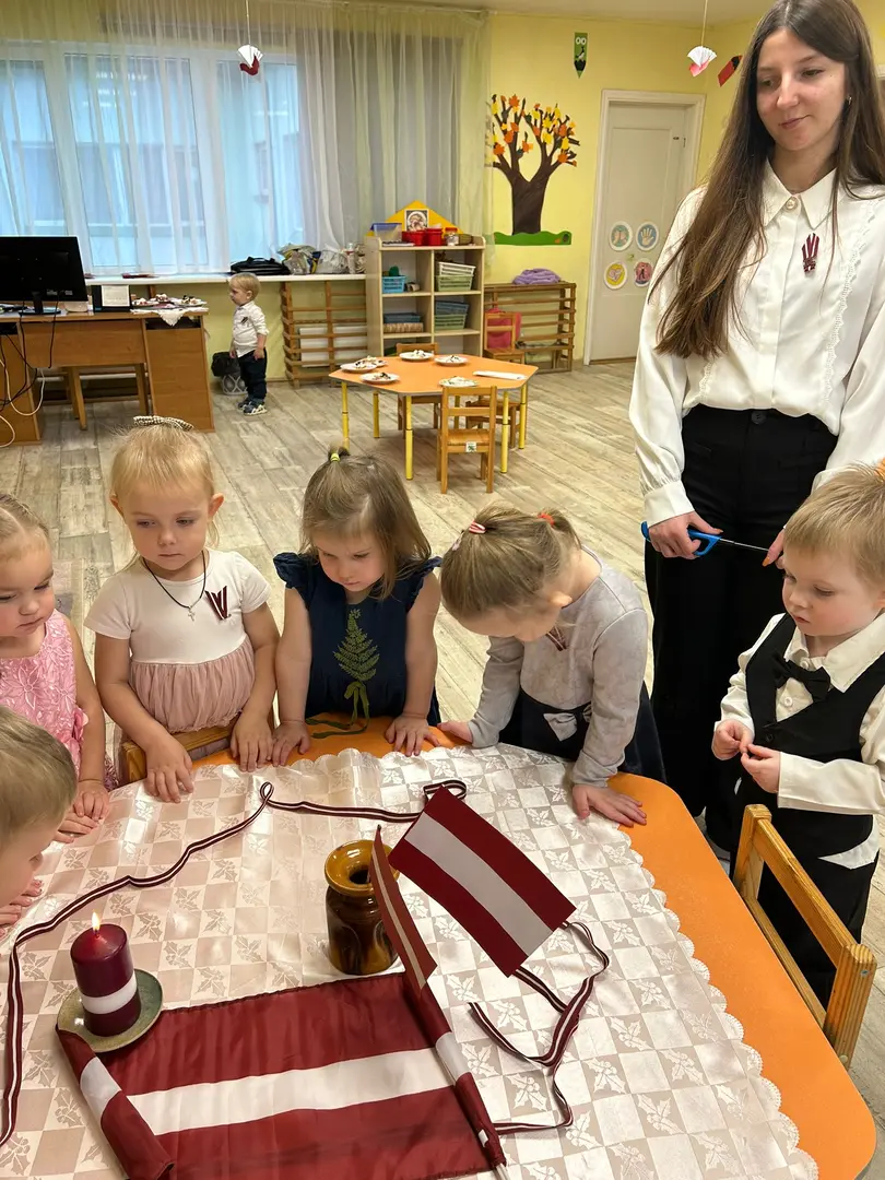 Bērni kopā gatavoja “svētku kūku Latvijai”, veidoja sirsniņas, dziedāja dziesmas un piedalījās rotaļās par mūsu skaisto zemi. Kopīgi klājām svētku galdu, iededzām sveci un, skanot Latvijas himnai, godinājām mūsu valsti.