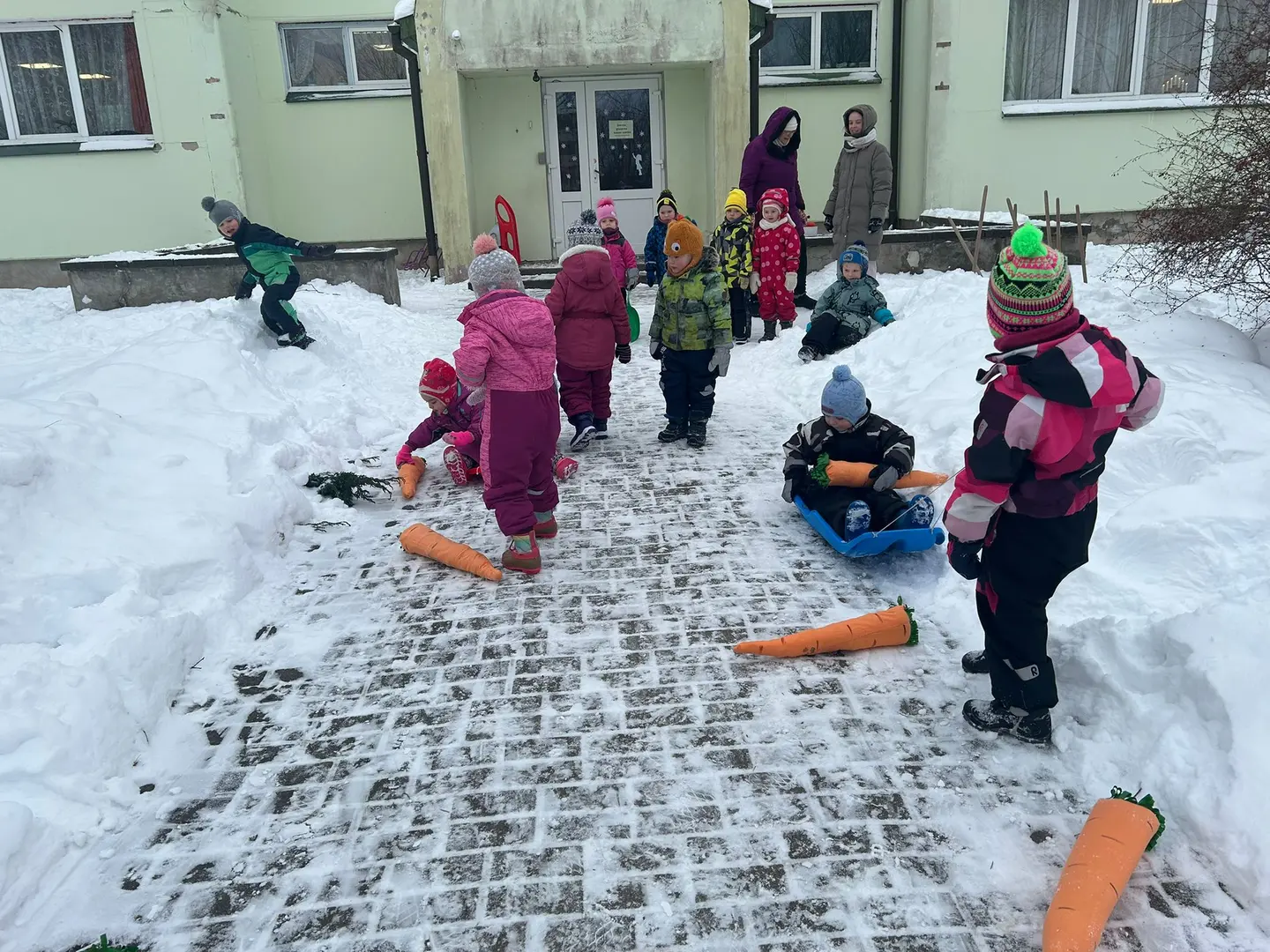 16.janvārī pirmsskolā notika “Sniega diena”. Sākumā bērni tika iepazīstināti ar drošības instruktāžu, lai varētu droši darboties visās aktivitātēs. Tālāk visi devās uz stafetēm un pildīja dažādas aktivitātes. Pēctam tapa krāsainā sniega torte, kura tagad rotā pirmsskolas pagalmu. Beigās, pēc labi pastrādāta darba, bērni bija nopelnījuši apbalvojumu - medaļas.